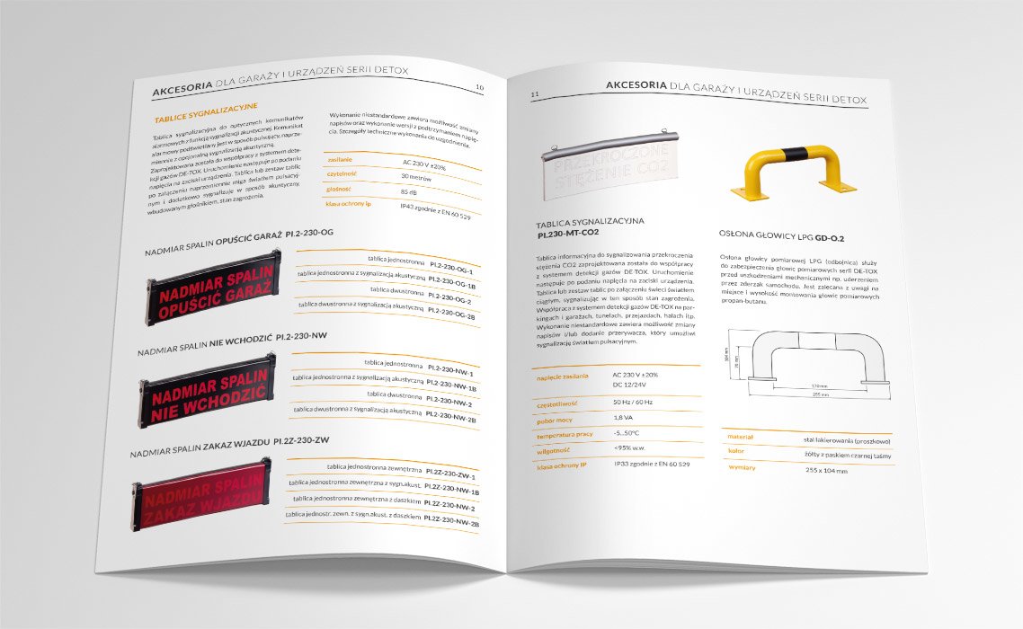Projekt katalogu produktowego dla producenta wykrywaczy gazu. W ramach zlecenia wykonaliśmy także zdjęcia produktowe do katalogu.